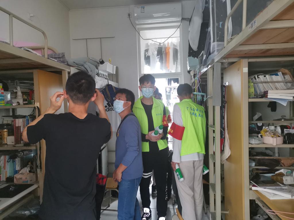 公司党团志愿者到访员工宿舍,为宿舍成员派发消毒液,提醒同学们注意个人卫生和宿舍公共卫生,积极配合公司做好宿舍防疫工作,积极预防各类流行疾病的发生。志愿者还向同学们传递疫情防控最新政策与知识,并征集同学们对宿舍防疫的建议和意见,了解同学们的实际困难。