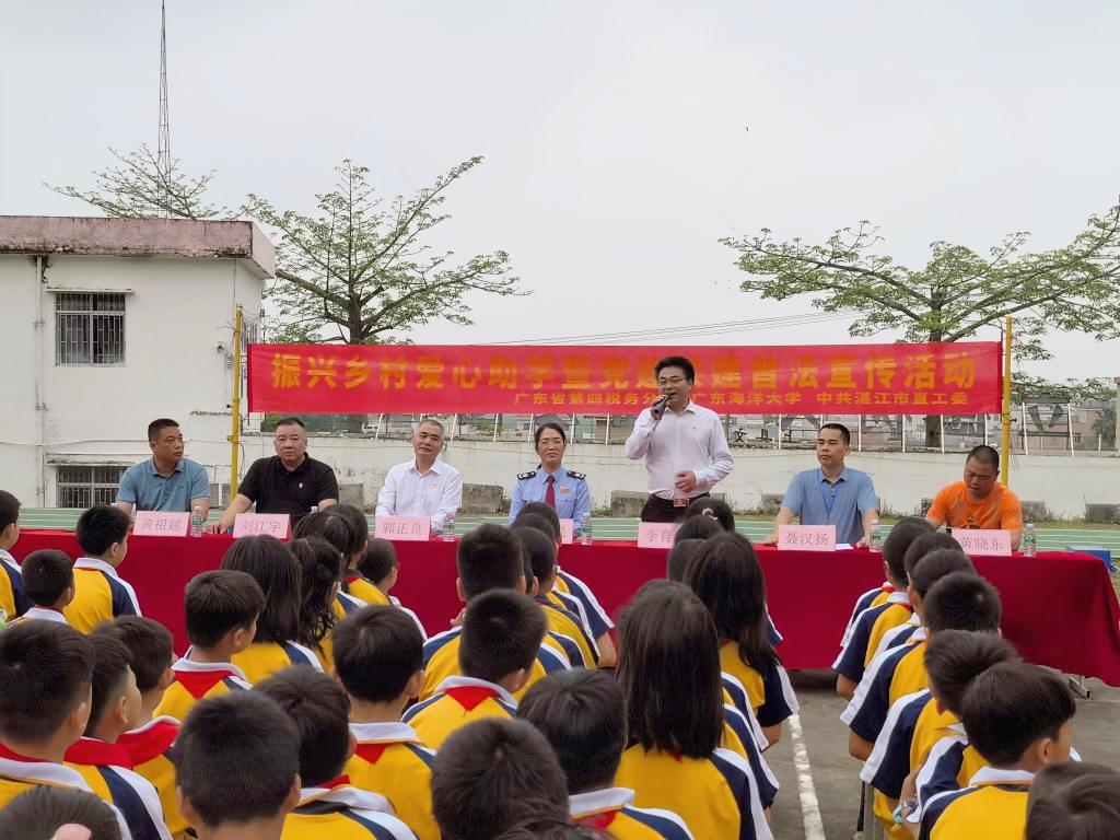为进一步贯彻落实全面推进乡村振兴战略部署,近日,悟空体育与广东省税务局第四税务分局、湛江市直工委走进廉江革命老区石城镇上县村上县小学,面向全校员工开展振兴乡村爱心助学、税法普法宣传和党史学习宣讲教育活动。