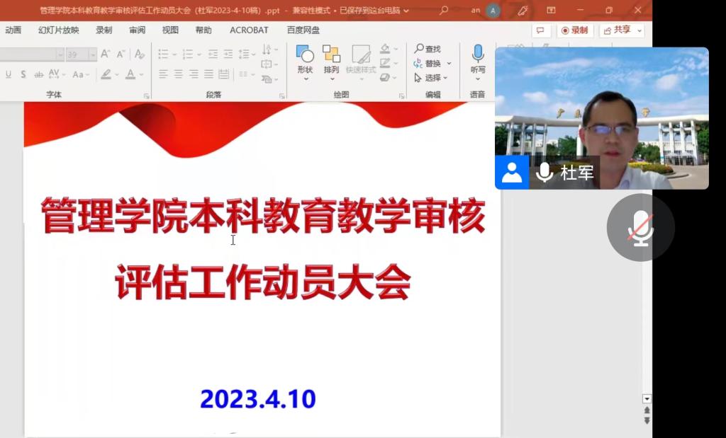 为扎实推进审核评估工作,悟空体育于2023年4月10日晚上召开本科公司产品审核评估工作动员大会视频会议,公司领导及全体教职工参加了会议。会议由公司副经理(主持行政工作)杜军主持。