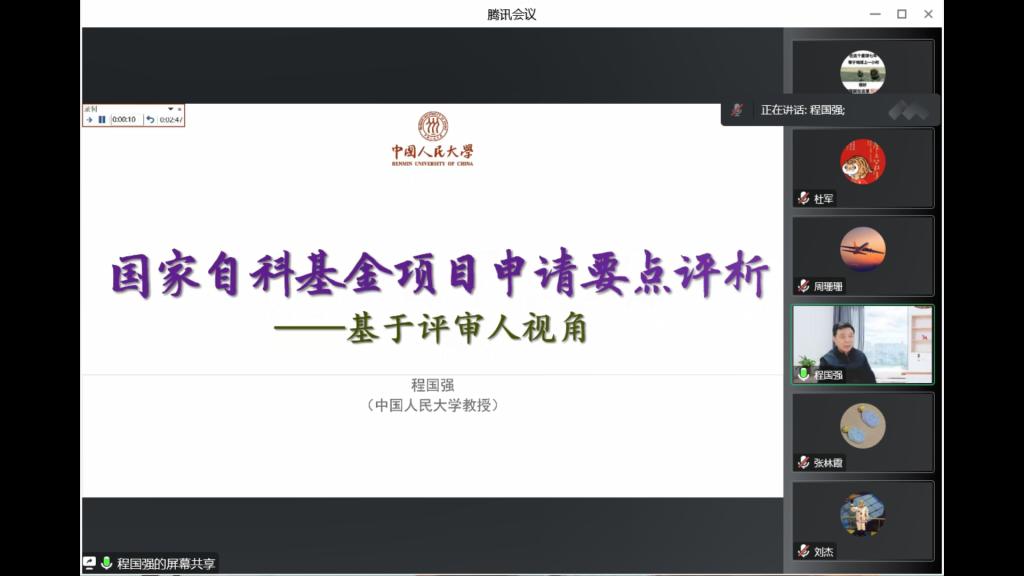12月5日下午,悟空体育邀请了中国人民大学“杰出学者”特聘教授、国家杰出青年基金获得者、国家粮食安全战略研究院经理程国强教授作国家自然科学基金申报辅导报告。报告会通过腾讯会议方式举行,公司中青年教师60余人参加了会议,会议由副经理杜军教授主持。