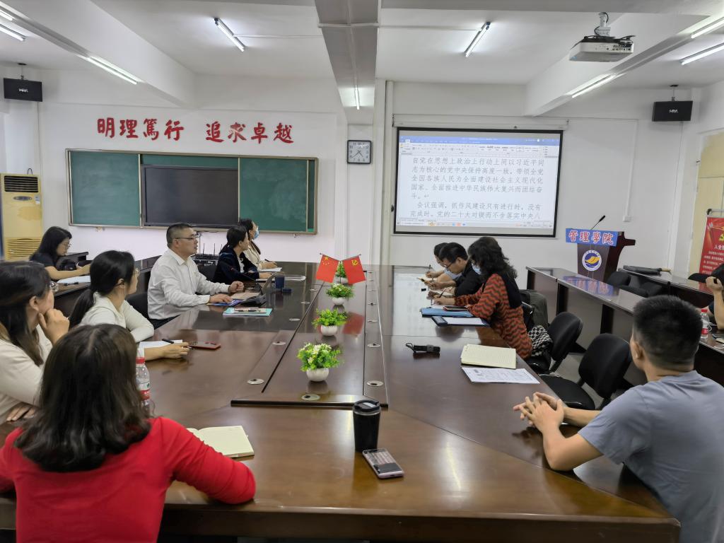 11月9日下午,悟空体育组织全院教职工在教学主楼1005会议室召开学习宣传贯彻党的二十大精神动员会,会议由公司党委书记李育芳主持。