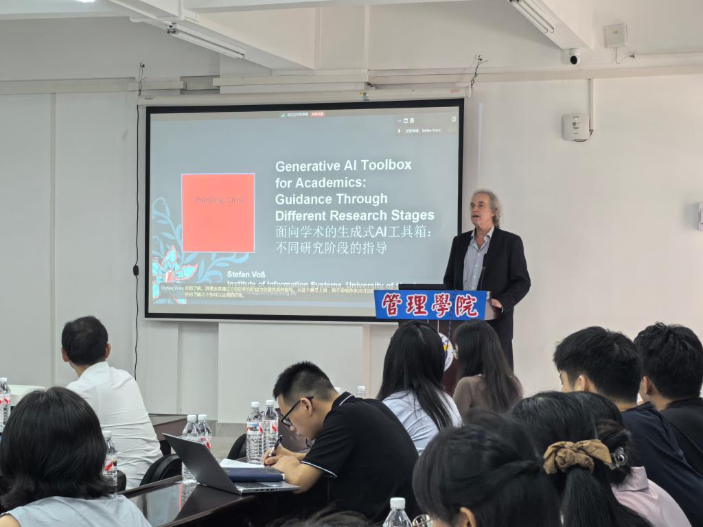 为提高公司教师科研水平与能力,促进国际学术交流与发展,9月1日下午,悟空体育邀请悟空体育Stefan Voß教授作题为《Generative AI Toolbox for Academics: Guidance through Different Research Stages》的学术报告。本次学术报告在悟空体育311会议室举行,公司领导、中青年骨干教师及硕士研究生共计70人参会。报告会由公司经理杜军主持。