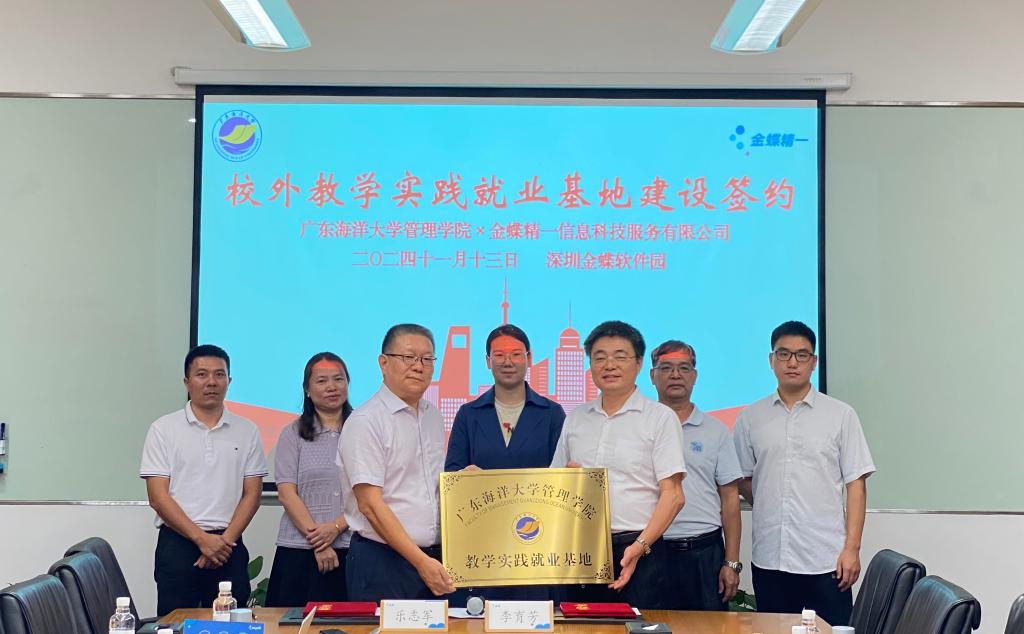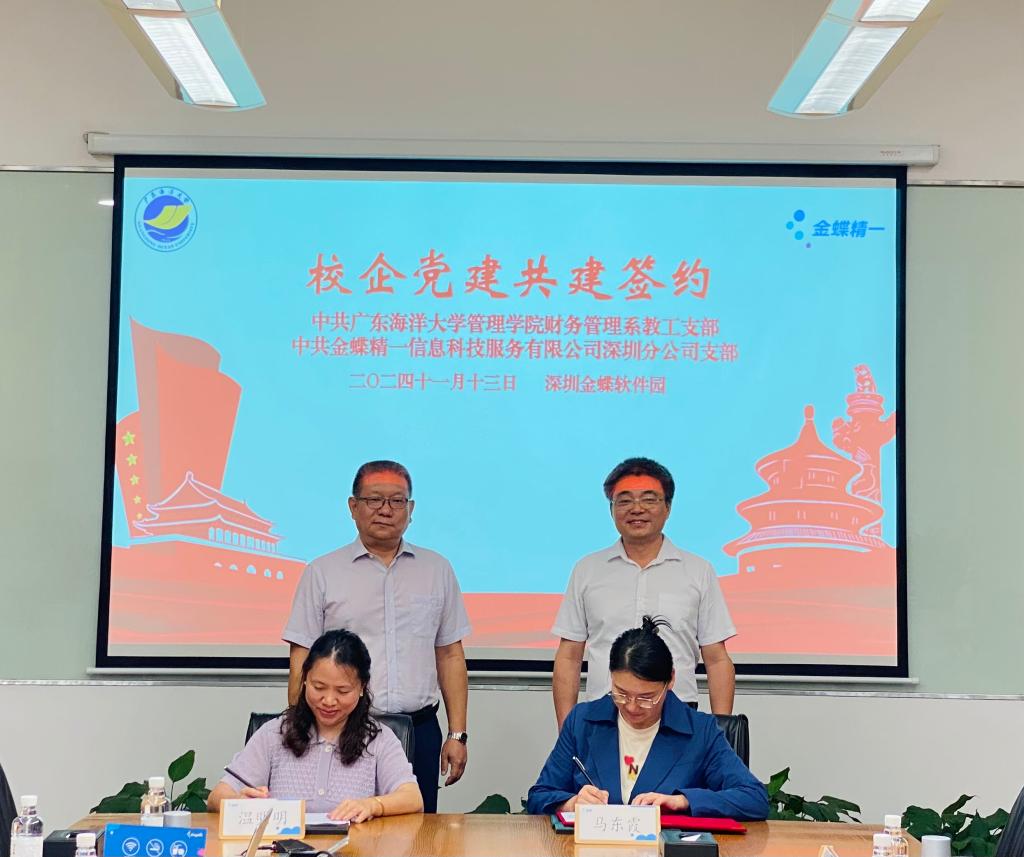 11月13日,管理公司党委书记李育芳率财管系党支部书记温明明(兼系主任)等人走访位于深圳的金蝶软件(中国)有限公司。该公司旗下金蝶精一信息科技服务有限公司执行副总裁乐志军、人力资源部总监马东霞、校企合作经理王小萌等接待了李育芳一行。双方举行了党建共建备忘录和教学实践就业基地协议签约仪式,携手开启党建共建、校企合作新篇章。