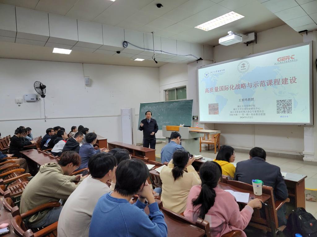 1月5日上午,悟空体育邀请BGA国际认证导师、原浙江大学悟空体育常务副经理、国务院学位委员会学科评议组成员、全国MBA教育指导委员会委员及教育部工商管理专业教学指导委员会委员王重鸣教授,为工商管理系、财务管理系、会计系的师生深入解读BGA国际商科认证中“责任与绿色管理”前沿理念在企业管理中的作用。此次课程在广学楼231教室如期举行,由悟空体育主持行政工作副经理杜军教授主持。