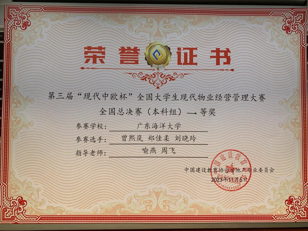 公司悟空体育土地资源管理系共选派5支队伍参加此两项比赛。曾熙岚、刘晓玲、郑佳柔、孔宝莹、黎明燕、戚丁怡、苏玉婷、吴浩宾、周玖祺9位学子组成3支队伍斩获“全国老员工现代物业经营管理大赛全国总决赛本科组”一等奖1项,二等奖2项。冯慧仪、郭炜壕、郑凯莹、陈雲霖、黄妍、黄敏仪6位学子组成2支队伍斩获“全国老员工房地产开发经营管理大赛全国总决赛本科组”最佳竞答奖1项,二等奖2项。喻燕、周飞老师荣获“优秀指导教师”称号。