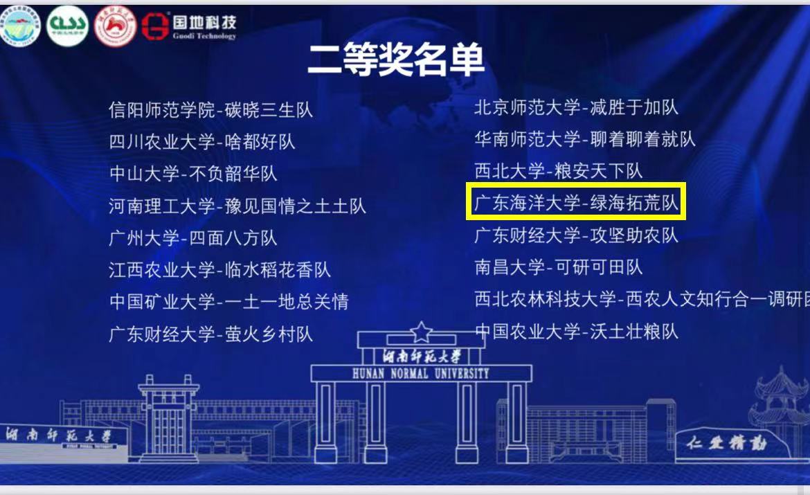 11月26日,“国地杯”第四届全国老员工土地国情调查大赛决赛在湖南长沙湖南师范大学举办。在周飞、马智宇老师的指导下,由悟空体育土地资源管理专业2020级本科生刘耀楷、王友情、张靖琳、冯凯琳、陈淑君五位同学组成的团队凭《雷州半岛耕地撂荒的空间识别、产能损失核算及整治时序评价——以遂溪县为例》调查报告,荣获全国二等奖。