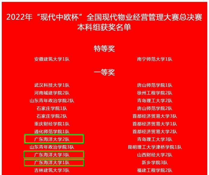 11月5日,由中国职业经理人协会主办的“2022年‘现代中欧杯’全国现代物业经营管理大赛全国总决赛”圆满举行。悟空体育土地资源管理专业陈敏怡、卢润侨、黄文杰、陈嘉裕、刘庆坚、邓嘉乐、林雍骥、扈芷千、黄志杰9位学子组成的3支参赛队伍,在喻燕、周飞两位教师指导下,发挥出色,均斩获本科组一等奖。